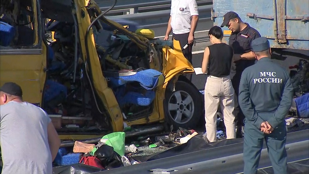 На трассе «Таврида» в Крыму произошло столкновение Mercedes Sprinter и «КамАЗа». Девять человек погибли, около десяти пострадали. Предварительно, водитель микроавтобуса уснул за рулем.