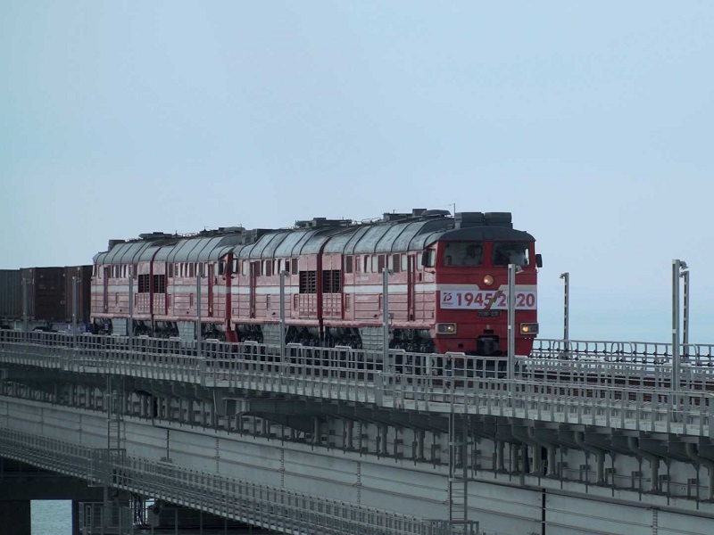 Два грузовых состава — один со стороны полуострова, другой со стороны материка — отправились друг другу навстречу.